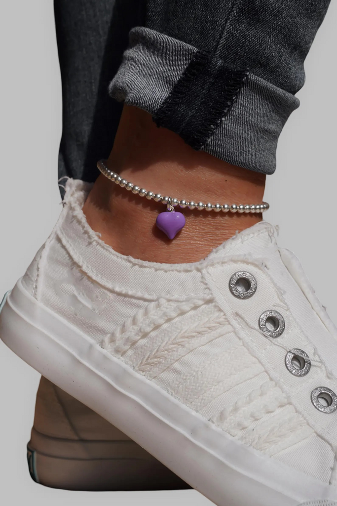 925 Sterling Silver Stretch Purple Heart Anklet, Sterling Silver Anklet, Ankle Bracelet, Heart, Anklet
