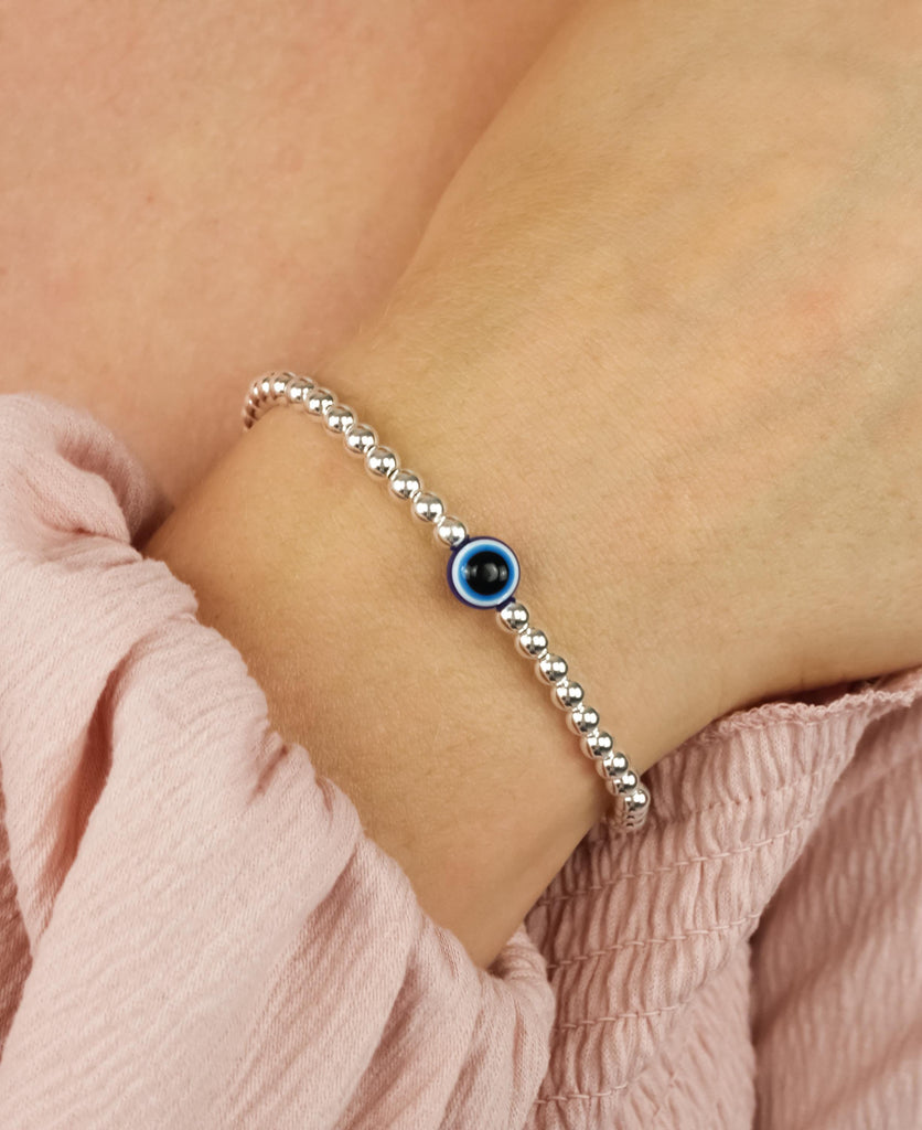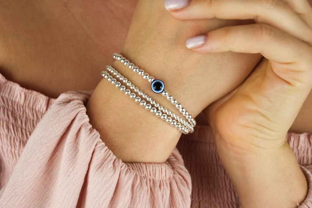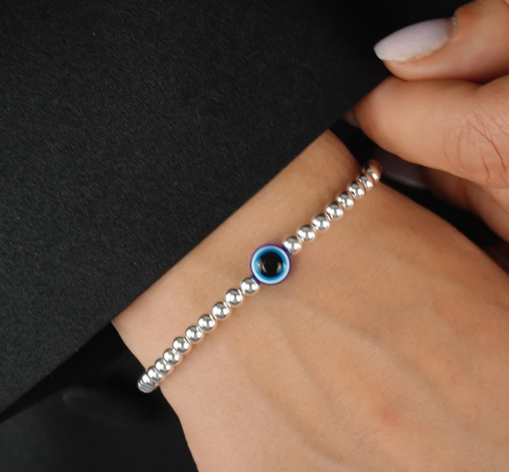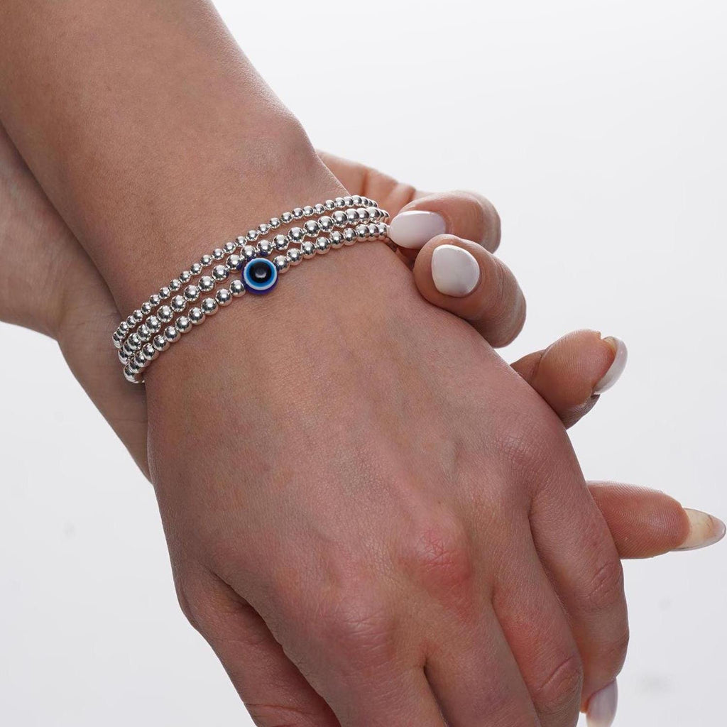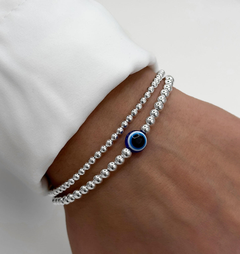 925 Sterling Silver Bracelet, Blue Evil Eye Charm, Evil Eye Bracelet, Stacked Bracelets, Evil Eye