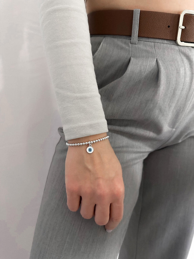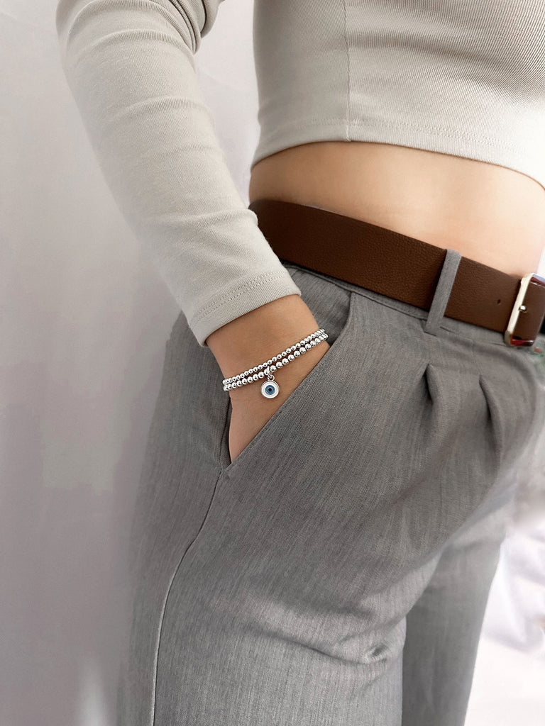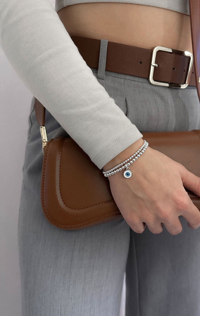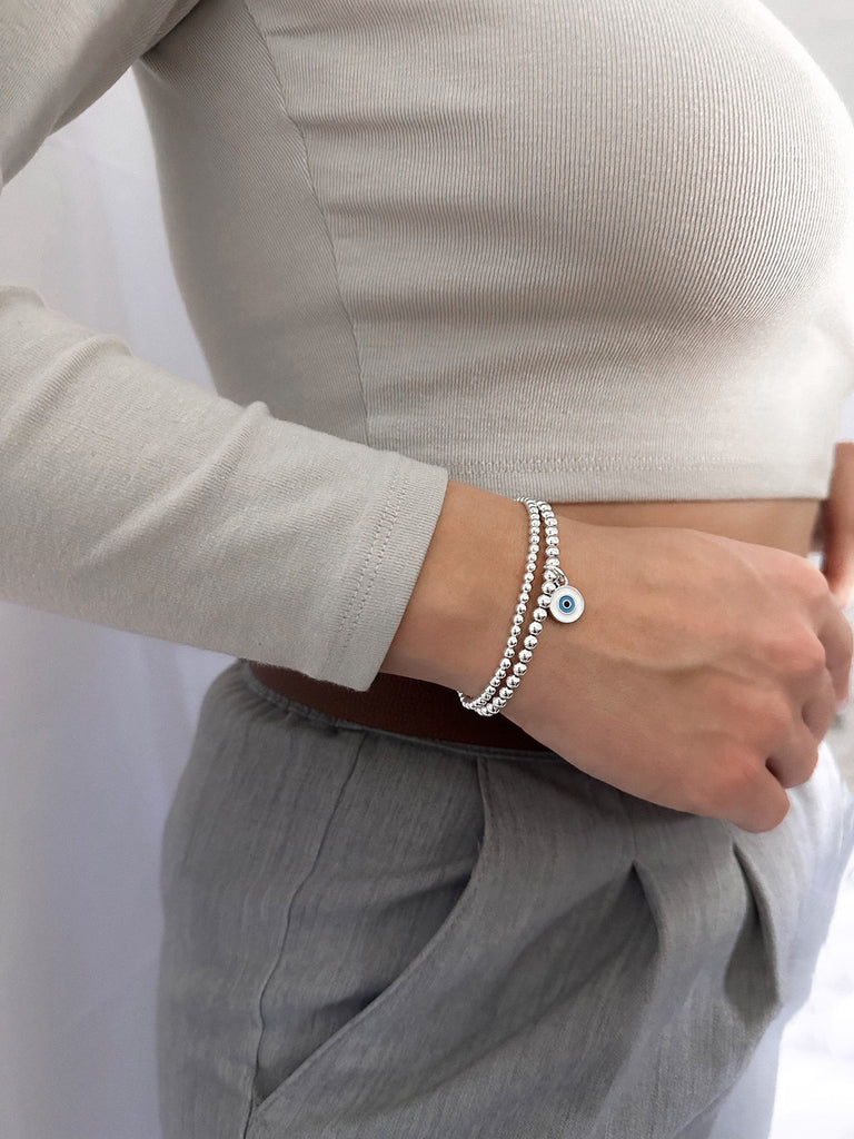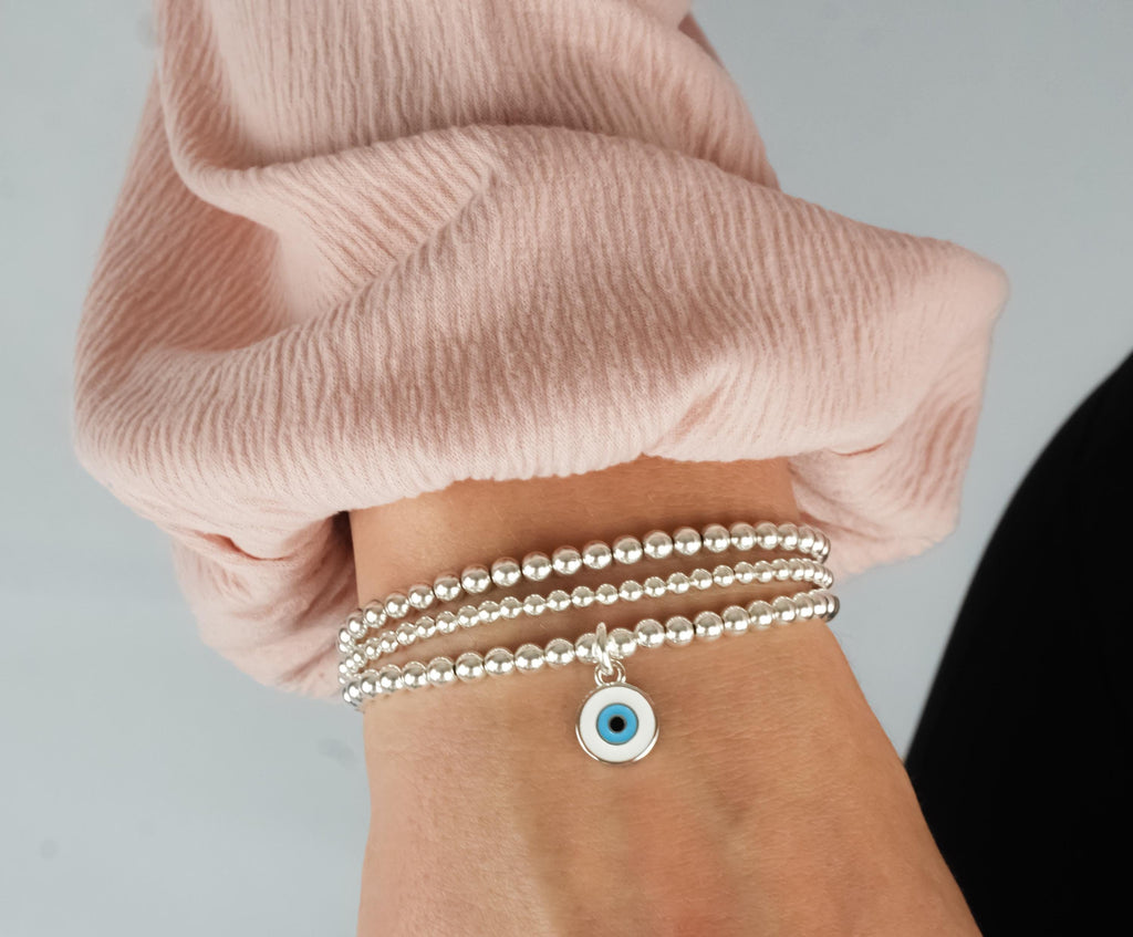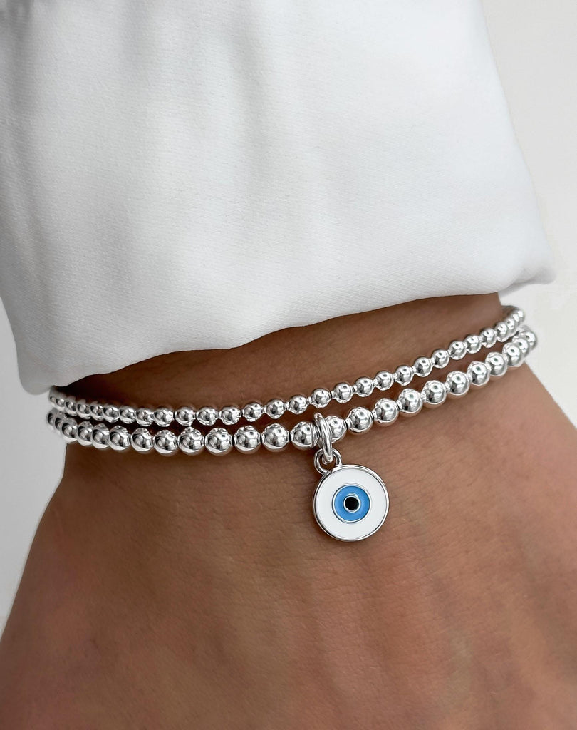 925 Sterling Silver Bracelet, Evil Eye Charm, Evil Eye Bracelet, Stacked Bracelets, Evil Eye