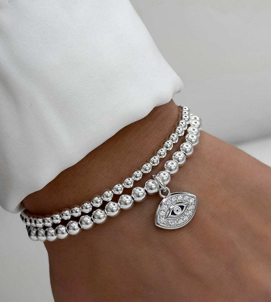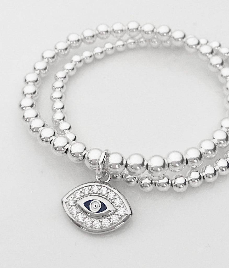 925 Sterling Silver CZ Evil Eye Bracelet, Evil Eye Bracelet, Stacked Bracelets, Evil Eye