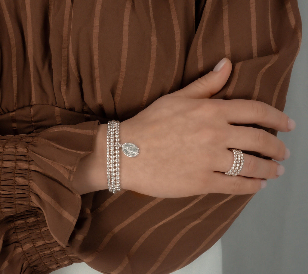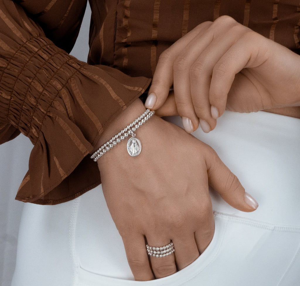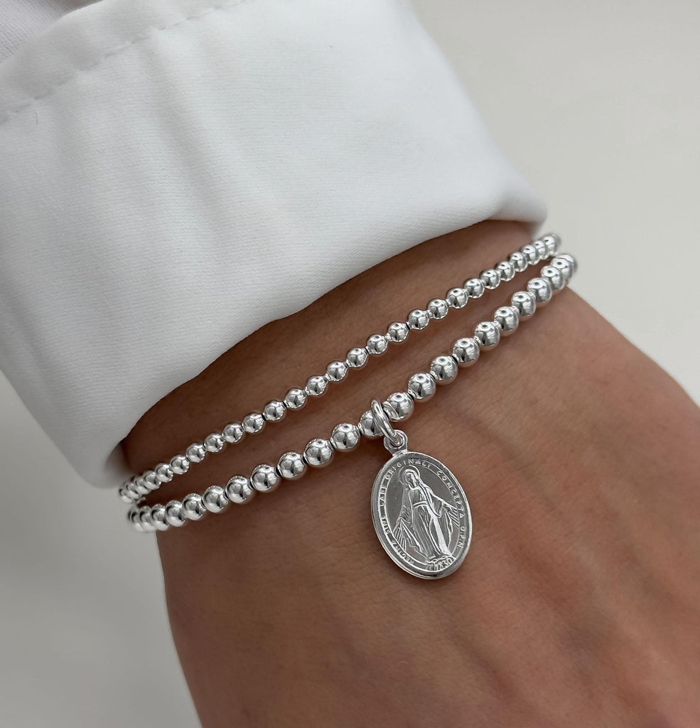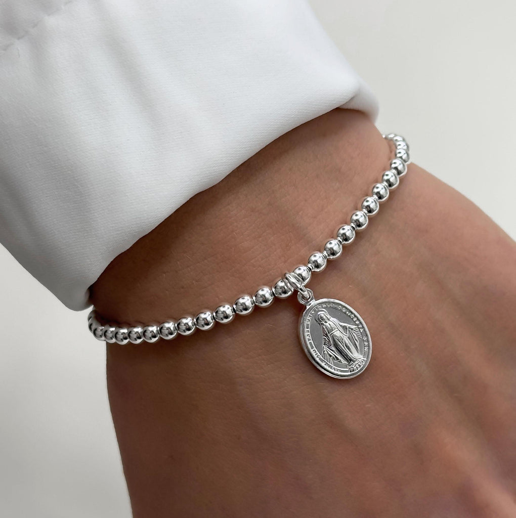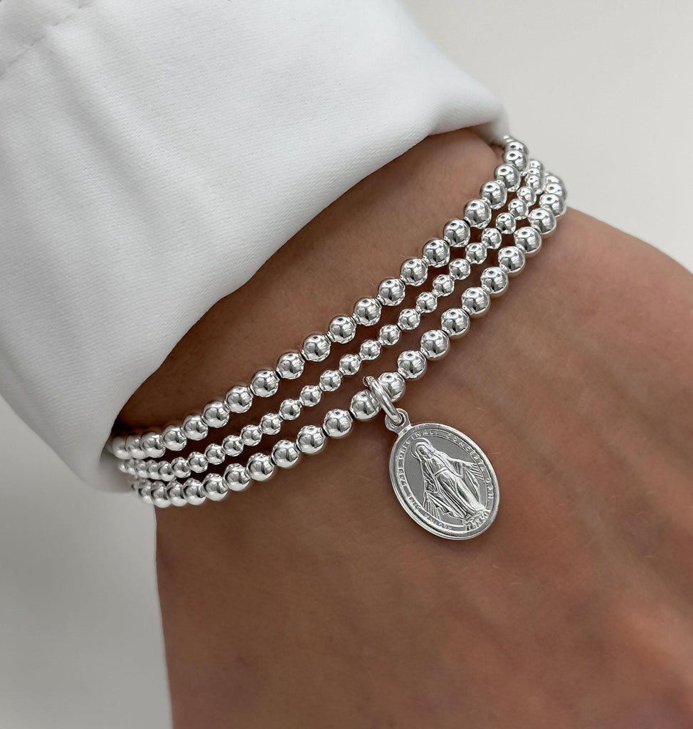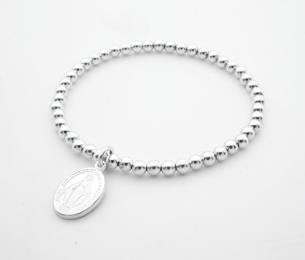 925 Sterling Silver Miraculous Medal Bracelet, Religious, Sterling Silver Bracelet, Beaded Bracelet, Stacked Bracelets