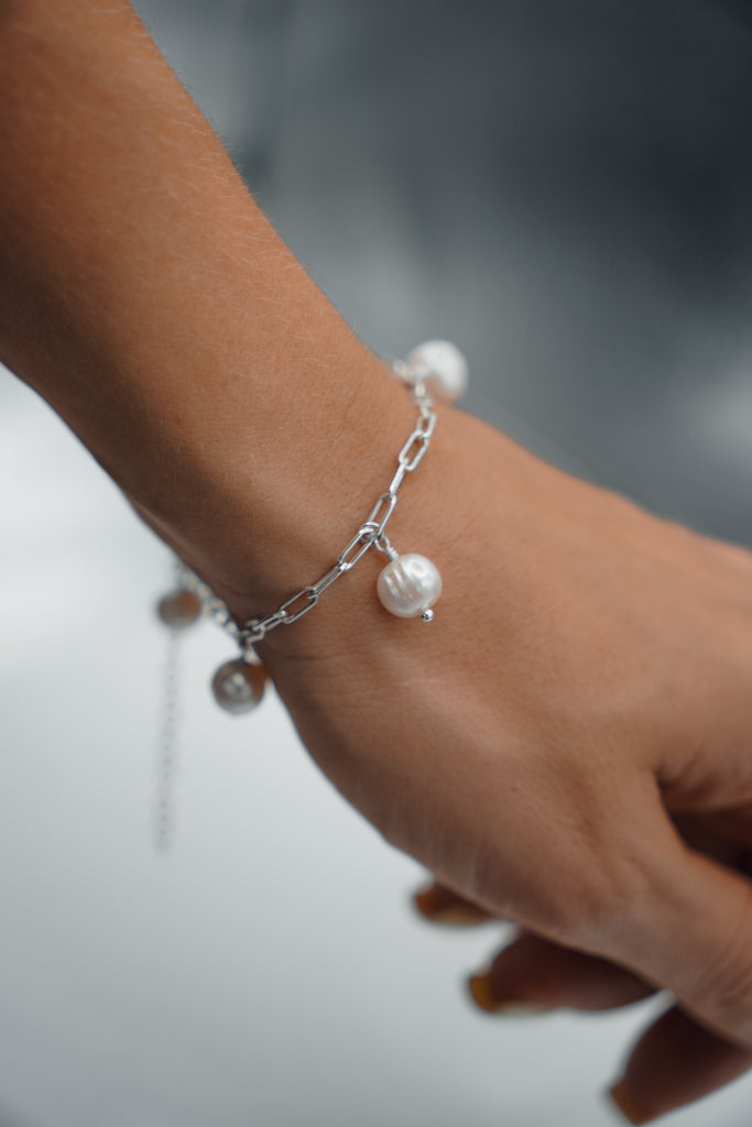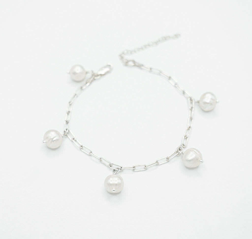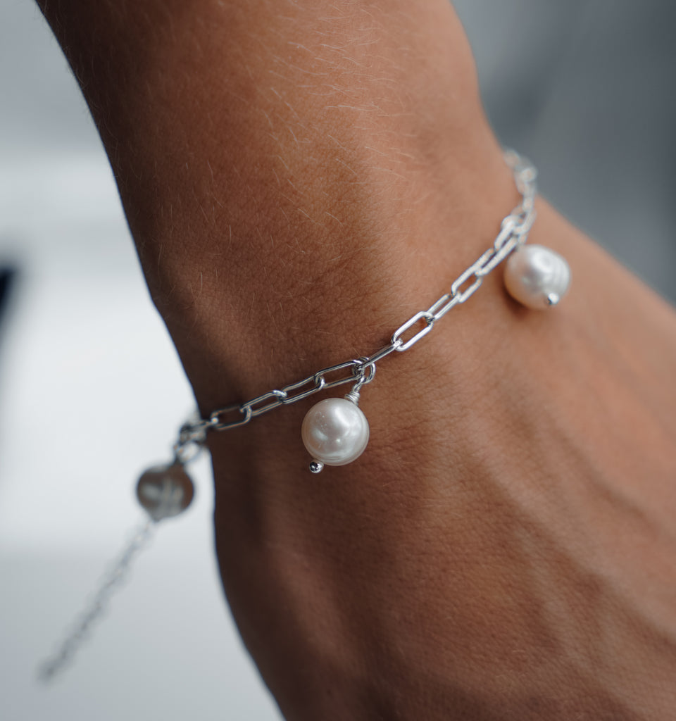 925 Sterling Silver Pearl Paperclip Bracelet, Sterling Silver Bracelets, Pearl Bracelet, Stacked Bracelets