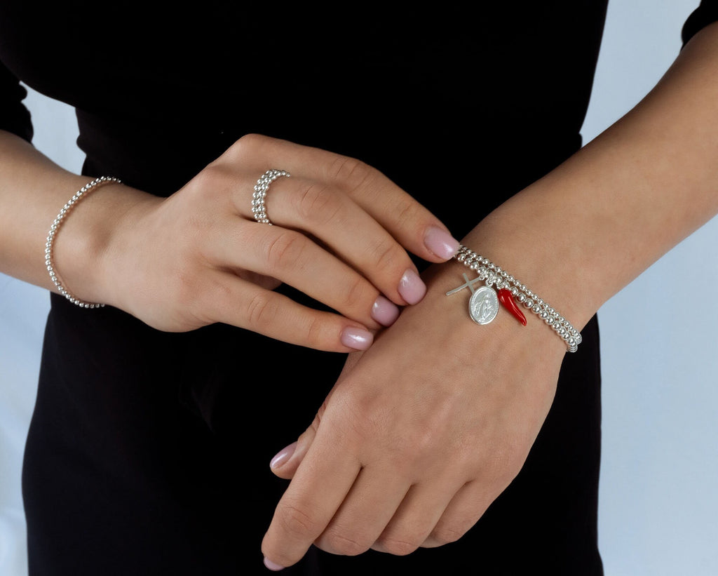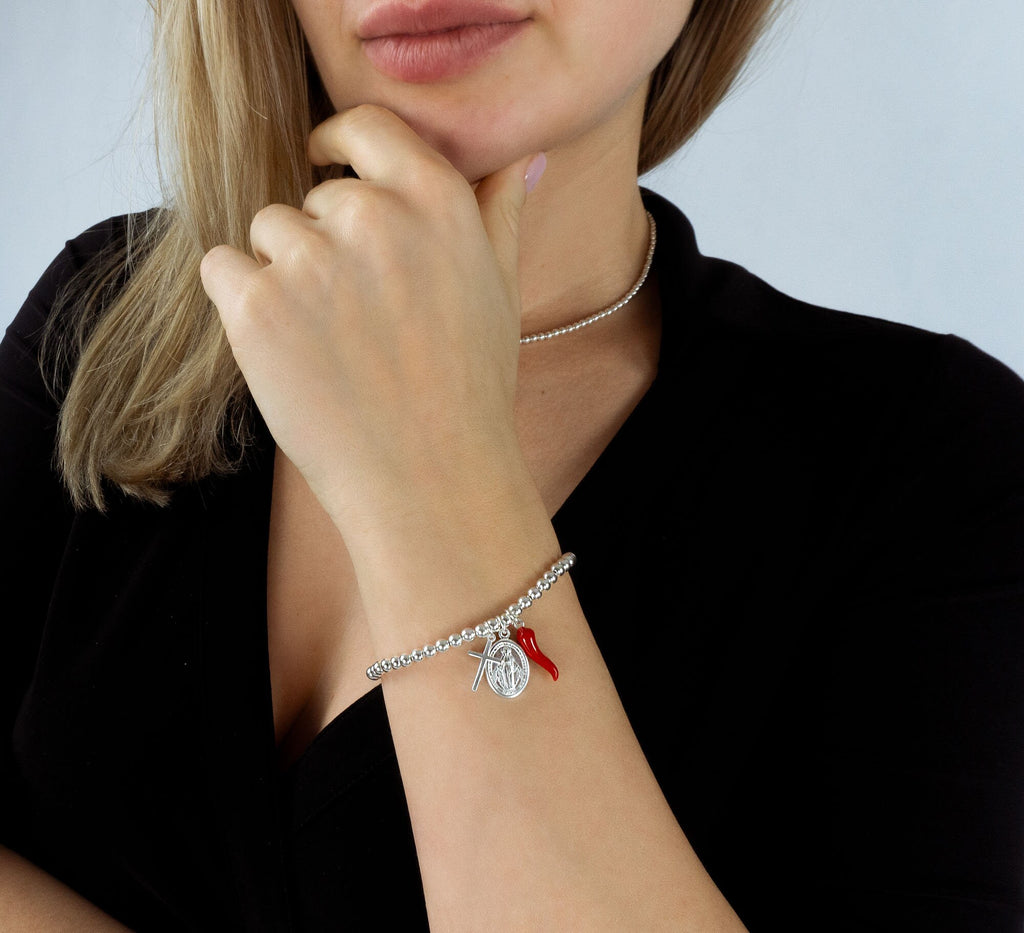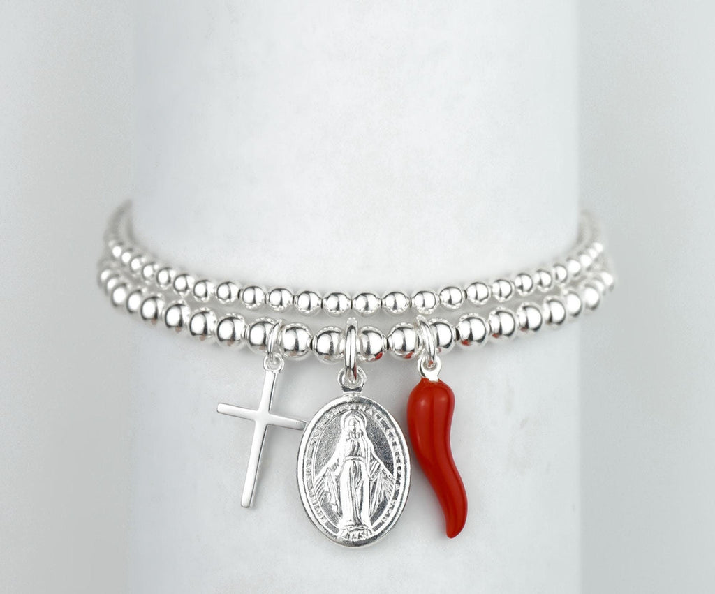 925 Sterling Silver Protection & Good Luck Bracelet, Italian Horn, Sterling Silver Bracelets, Malocchio Bracelet, Stacked Bracelets