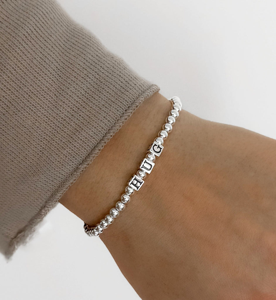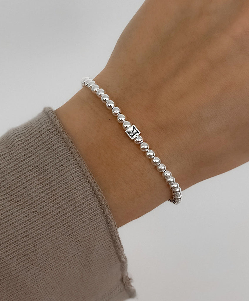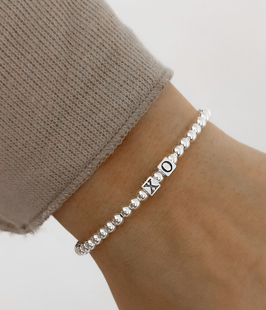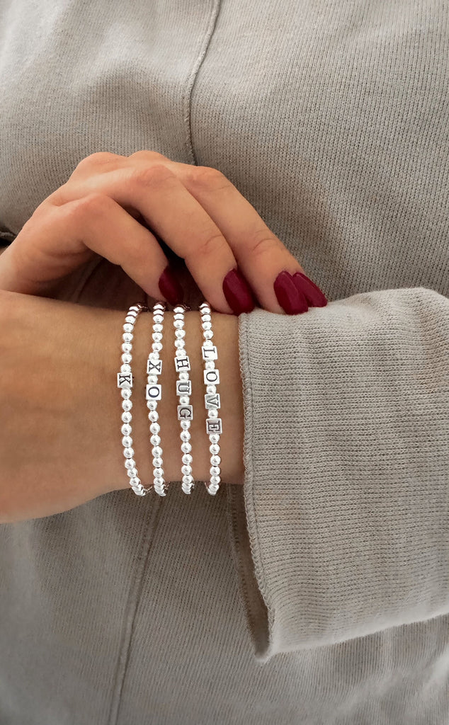 925 Sterling Silver Square Initial Bracelet, Sterling Silver Stretch Bracelet, Initial Bracelet, Stacked Bracelets