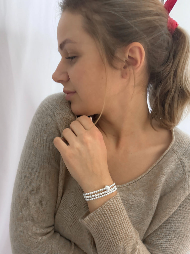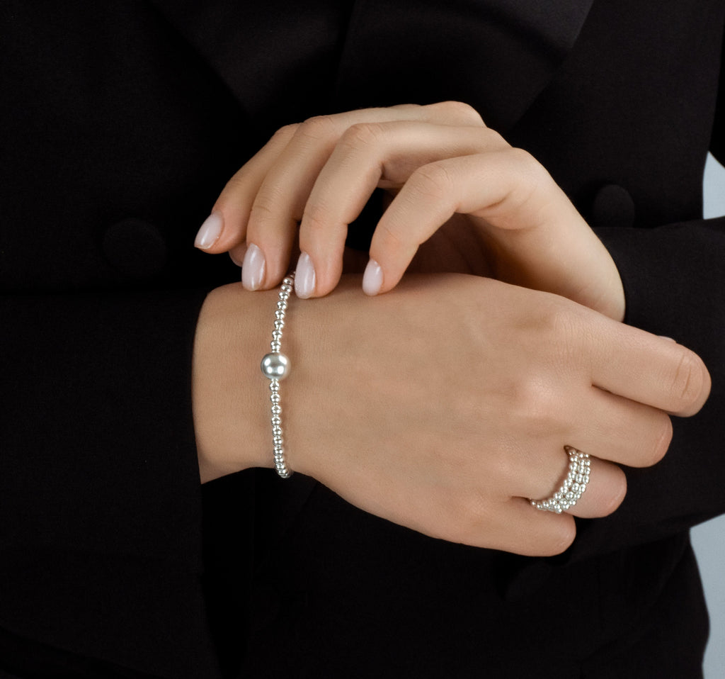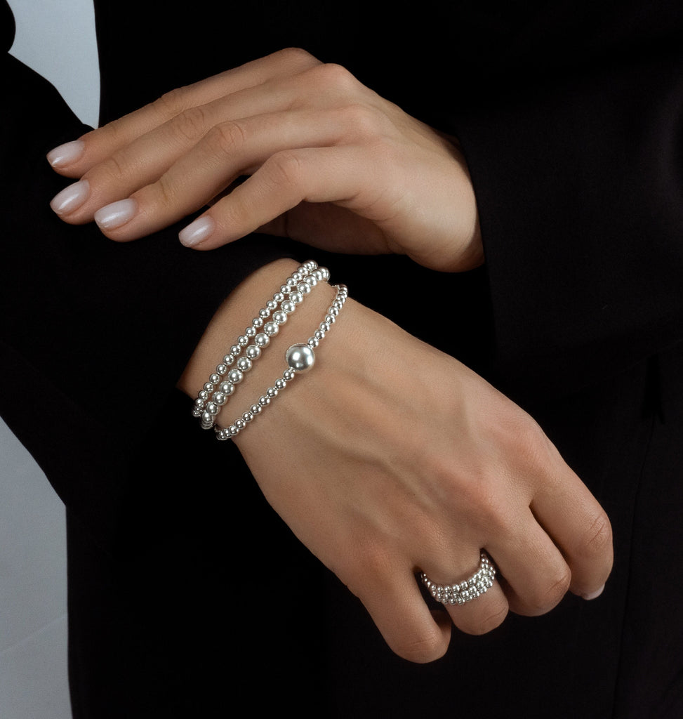 925 Sterling Silver Stretch Bracelet w/ 10mm Accent Bead, Bracelet, Stacked Bracelets, Women's Bracelets