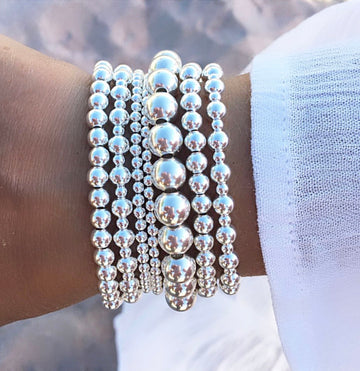925 Sterling Silver Stretch Bracelets (Stack of 7), Sterling Silver Stacked Bracelet