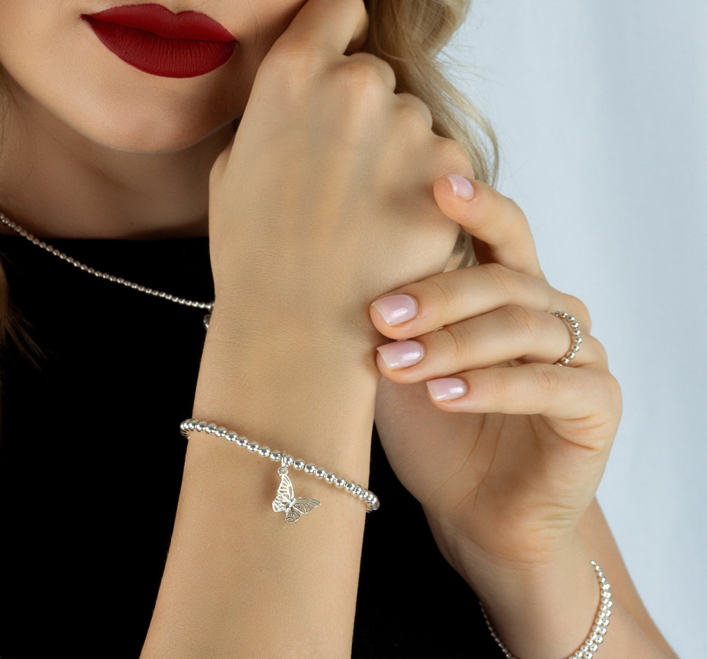 925 Sterling Silver Stretch Butterfly Charm Bracelet