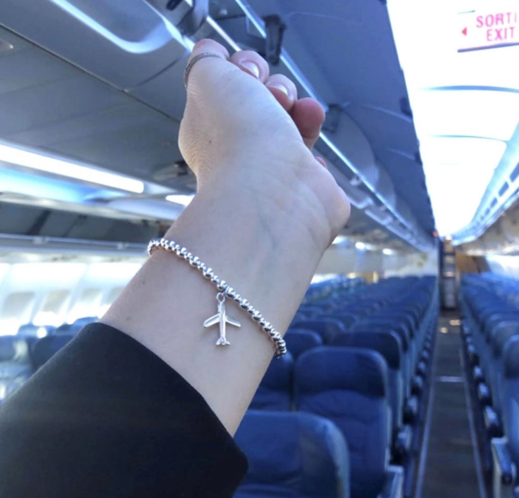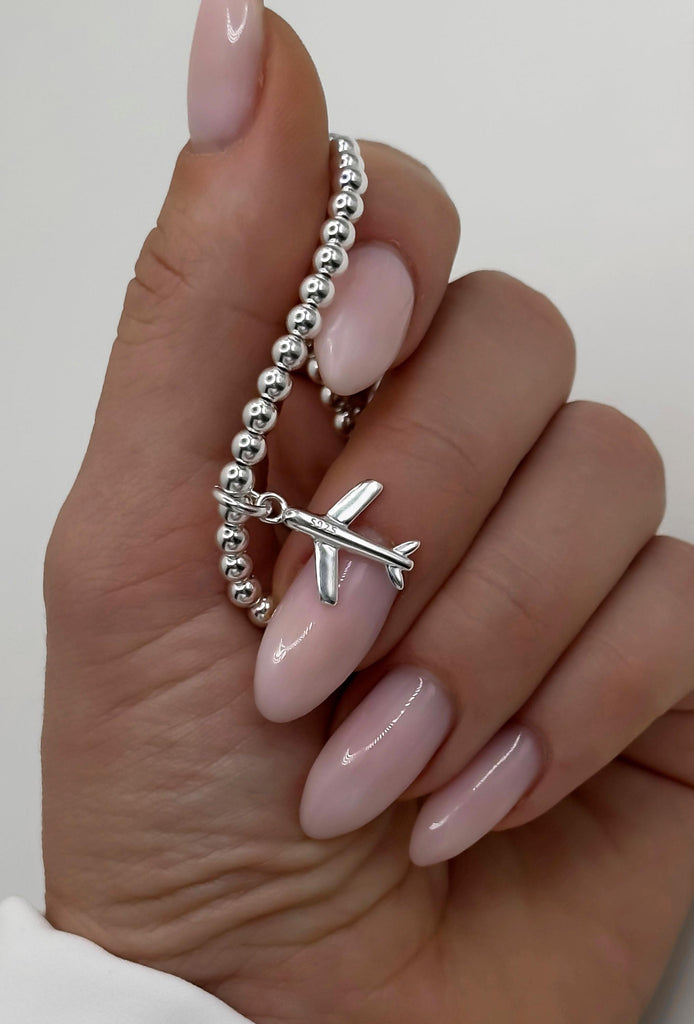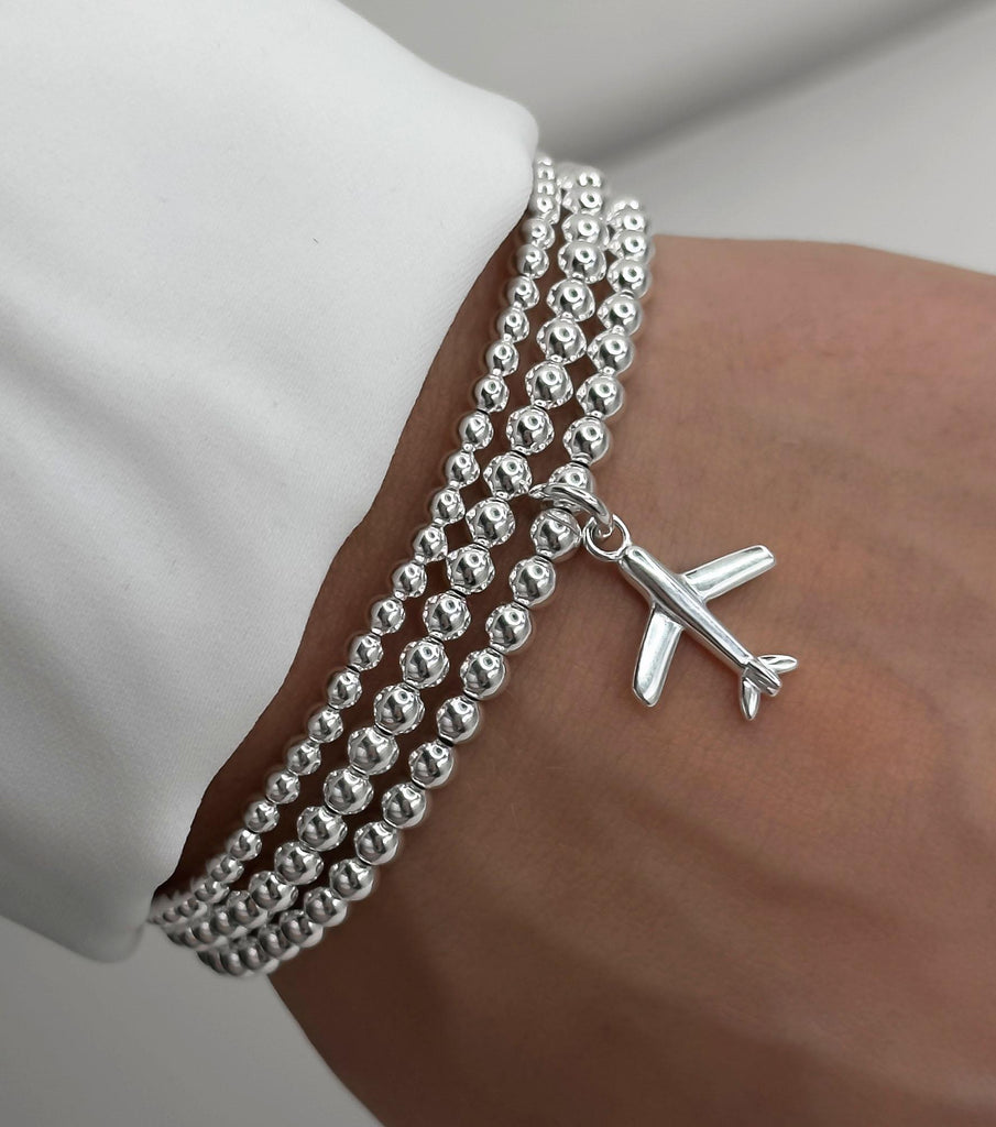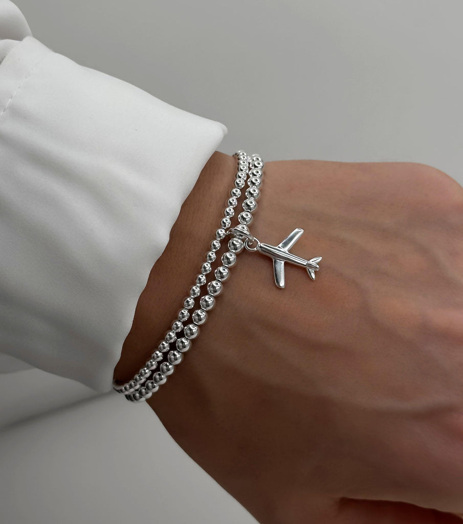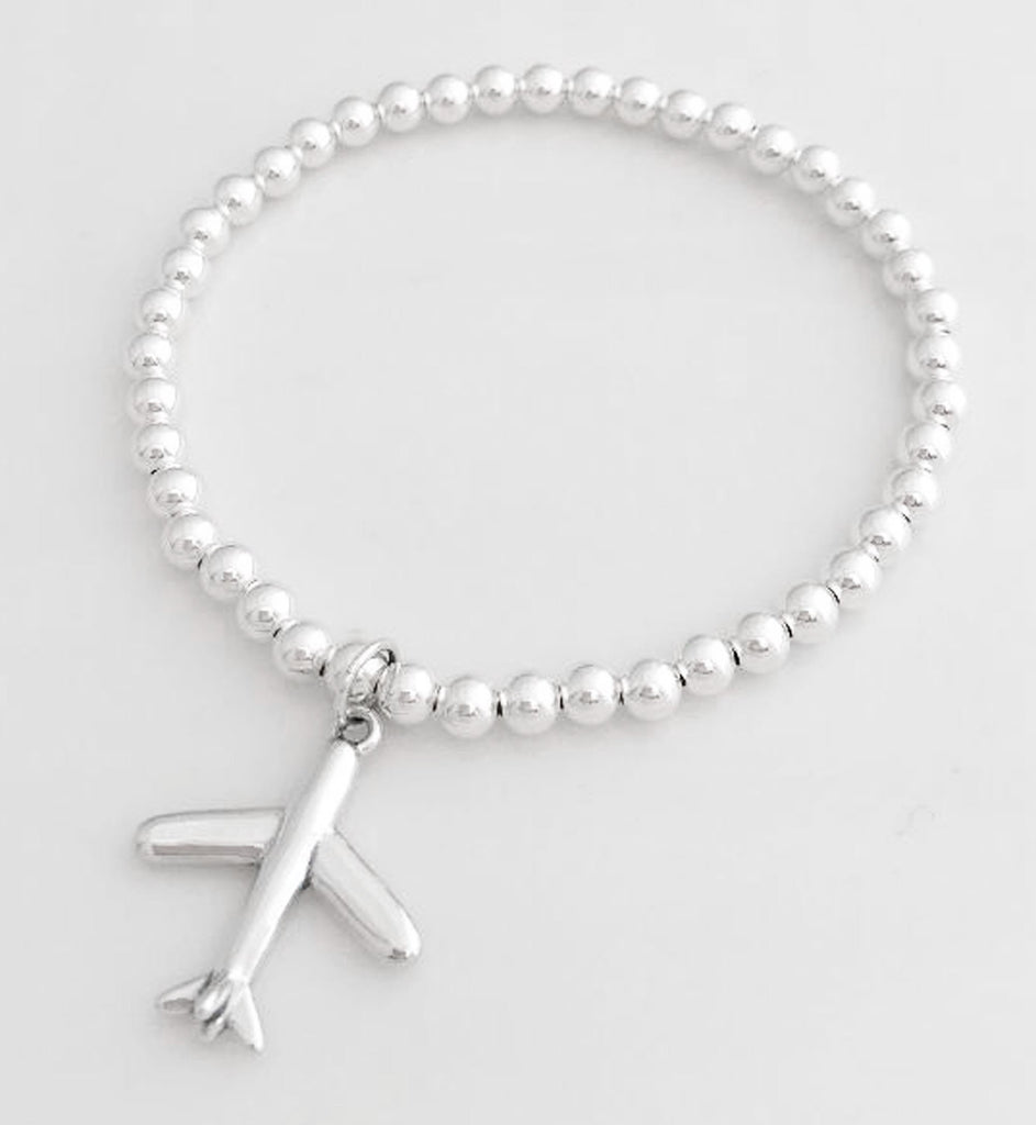 925 Sterling Silver Stretch Charm Bracelet, Sterling Silver Airplane Bracelet, Sterling Silver Bracelet, Airplane