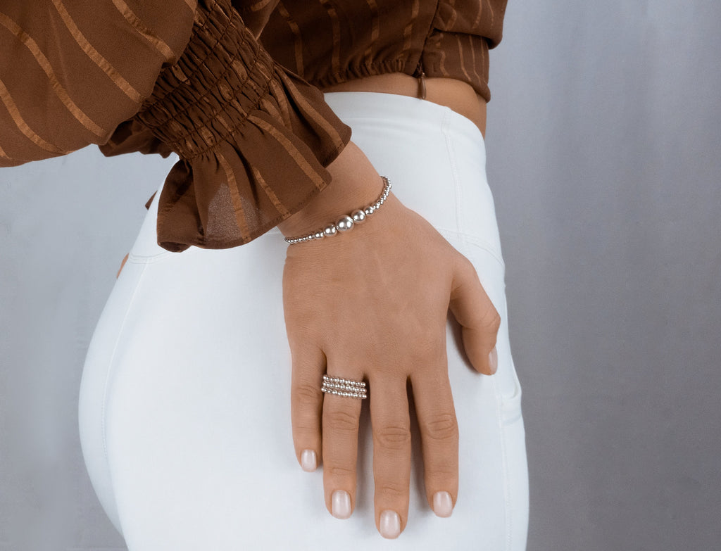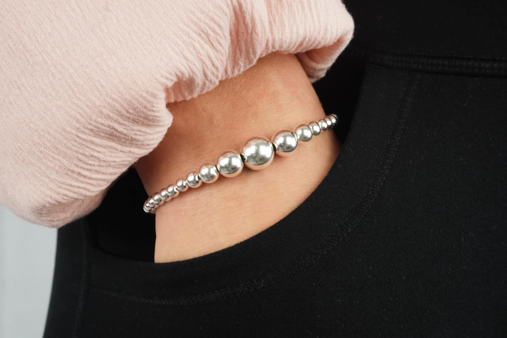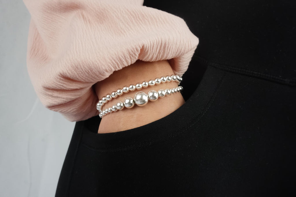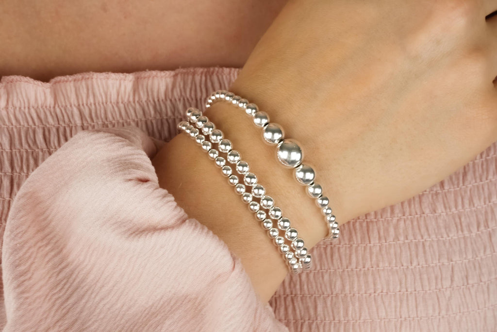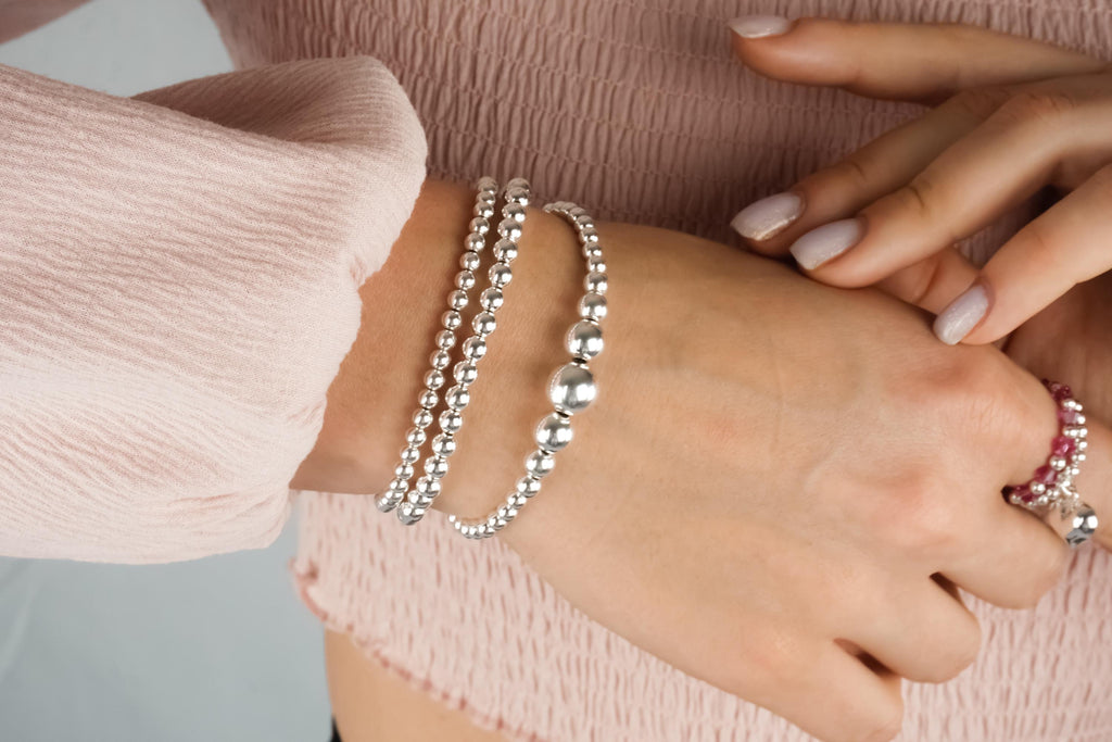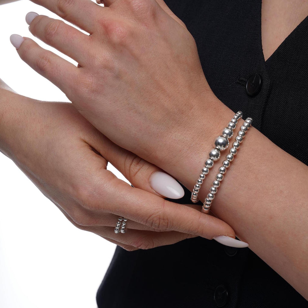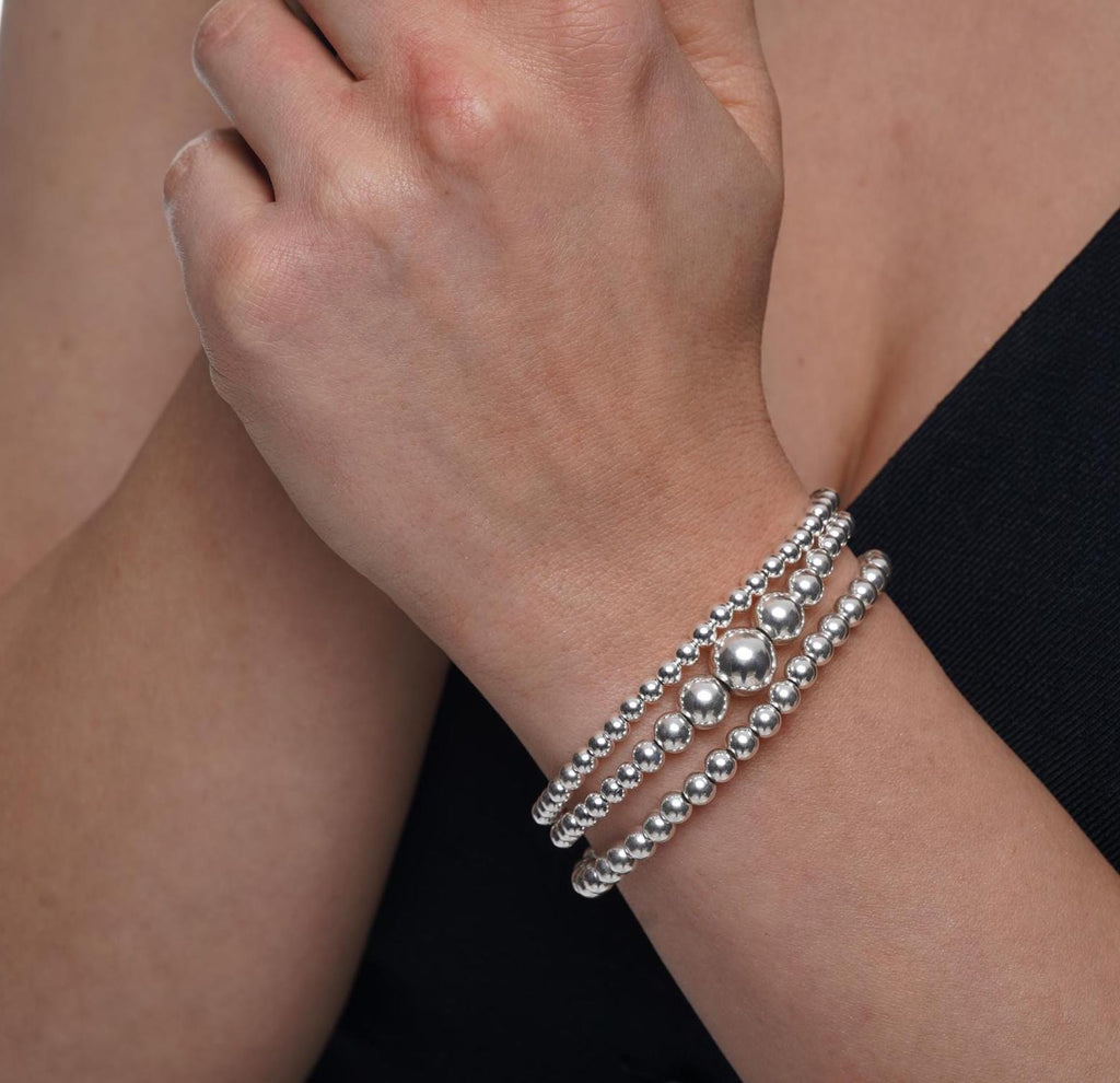 925 Sterling Silver Stretch Mixed Bead Bracelet, Bracelet, Stacked Bracelets, Women's Bracelets
