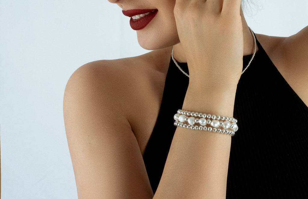 Freshwater Pearl 925 Sterling Silver Bracelets, Sterling Silver Bracelets, Pearl Bracelets, Stacked Bracelets