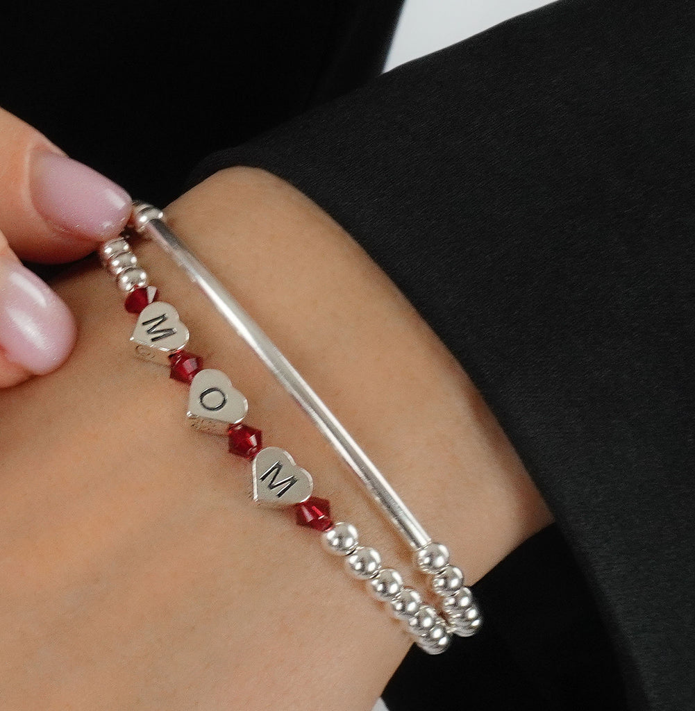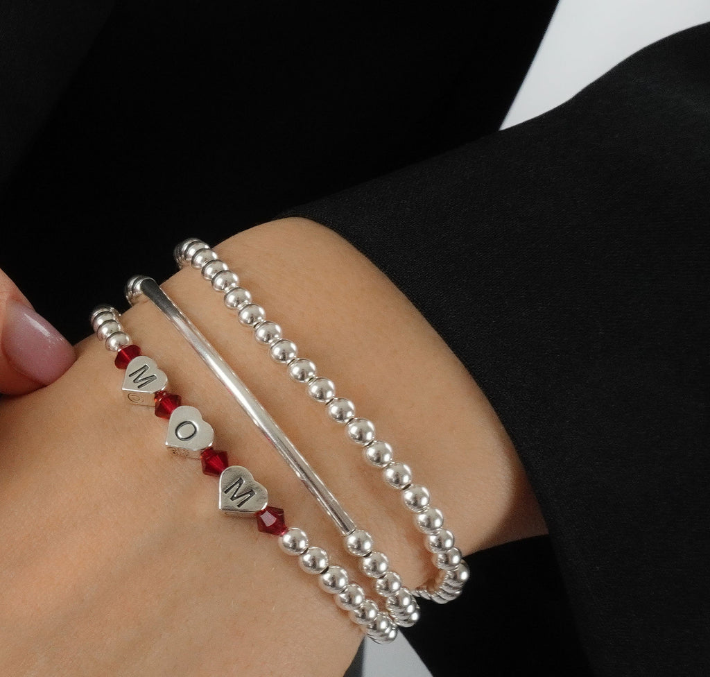 925 Sterling Silver Stack of 4 Bracelets for Mom