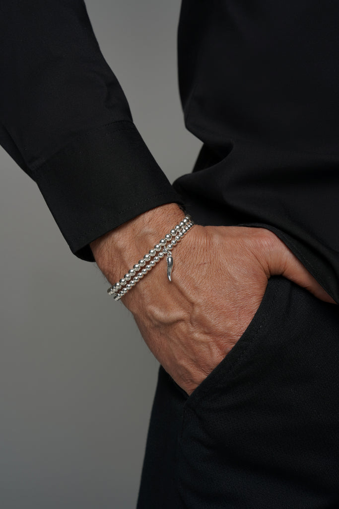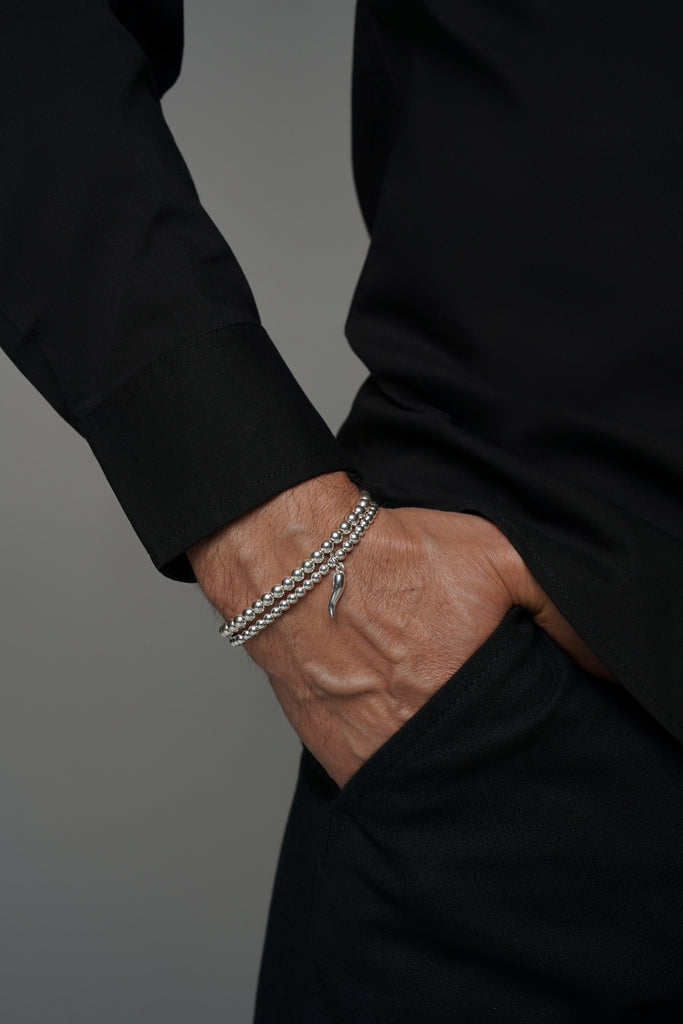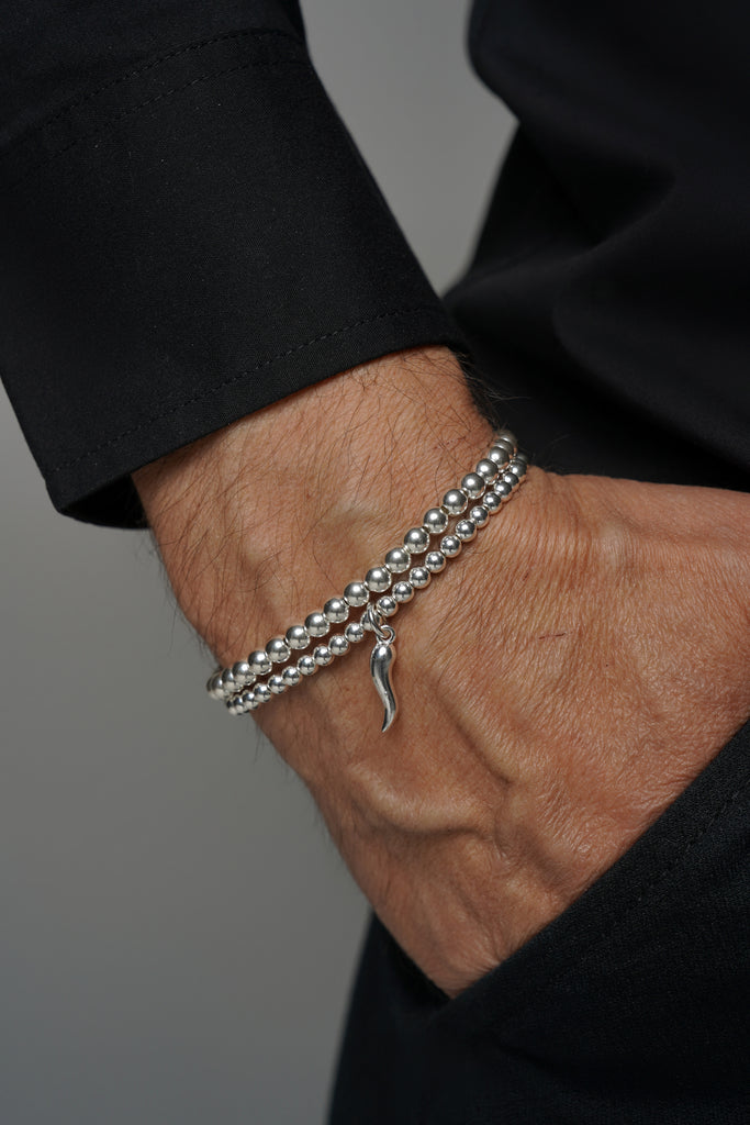 925 Sterling Silver Cornetto Italian Horn Stretch Bracelet, Malocchio Bracelet, Stacked Bracelets, Silver Bracelets