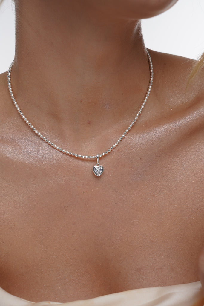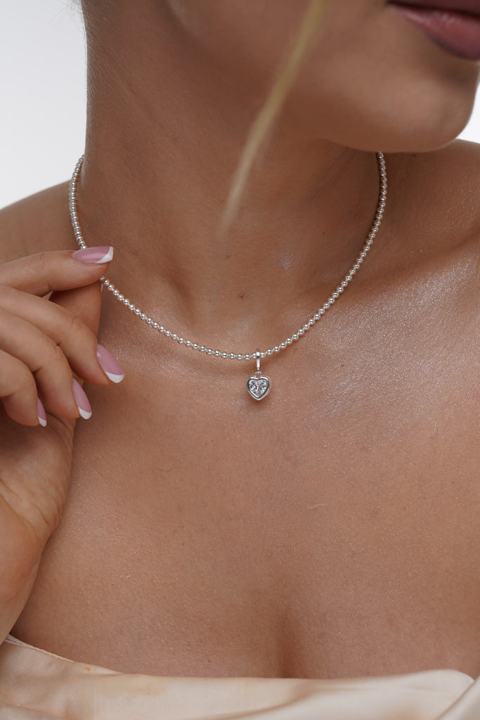 925 Sterling Silver CZ Birthstone Heart Stretch Necklace w/ clasp, Birthstone Necklace, 3mm Sterling Silver Necklace, Heart Necklace