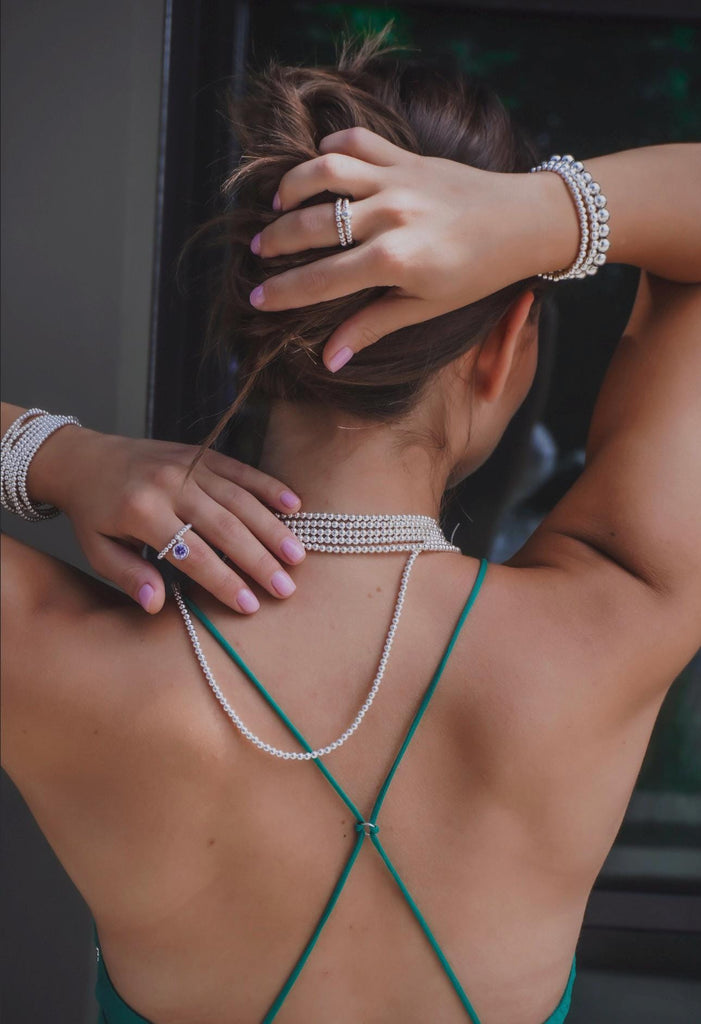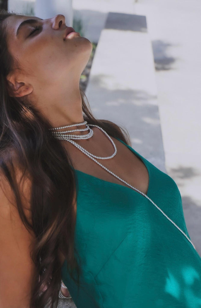This Gorgeous 60" 925 Sterling Silver Beaded Necklace can be worn in a variety of styles! There is no clasp or closure and it easily slides over your head. Whether it's casual or evening wear it's a perfect accent to any outfit.