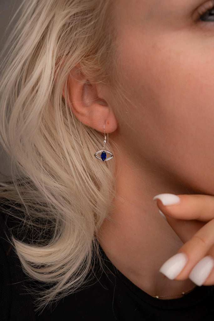 925 Sterling Silver Blue CZ Evil Eye Earrings, Earrings, Women's Earrings, Bridal Earrings