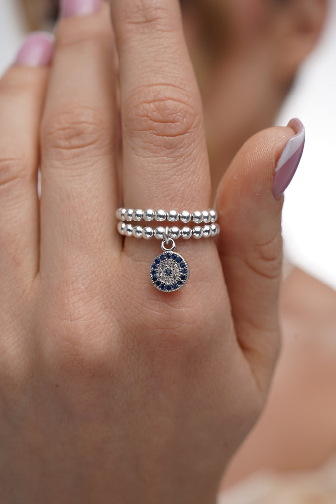 925 Sterling CZ Evil Eye Stretch Charm Ring, Evil Eye, Silver Rings, Stacked Rings