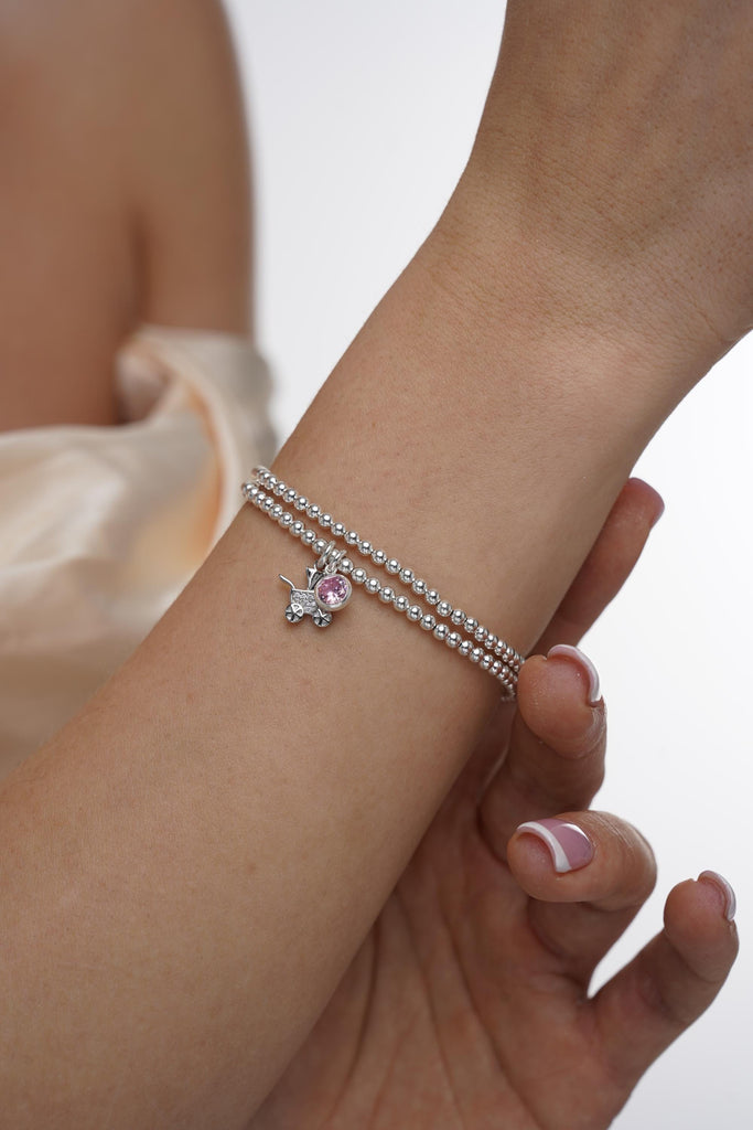 925 Sterling Silver Baby Carriage Bracelet (Stack of 2), Baby Girl, Baby Boy, Sterling Silver Stretch Bracelets, Stacked Bracelets