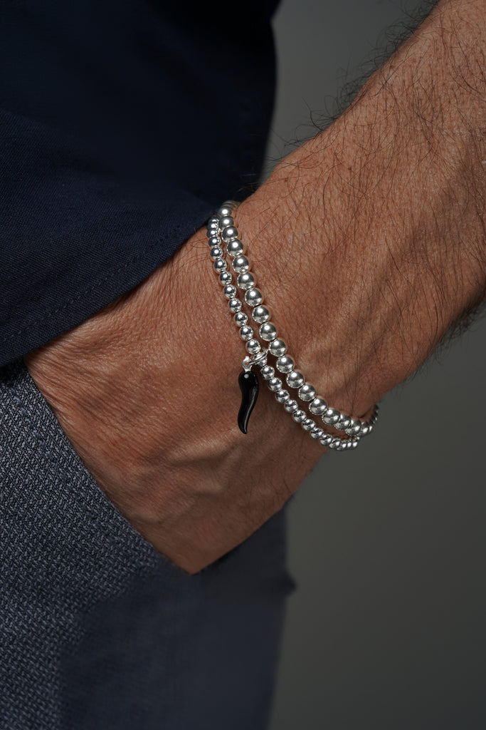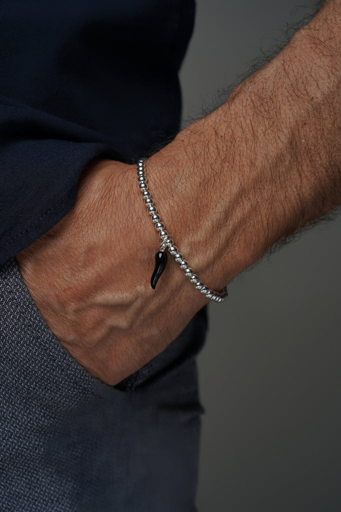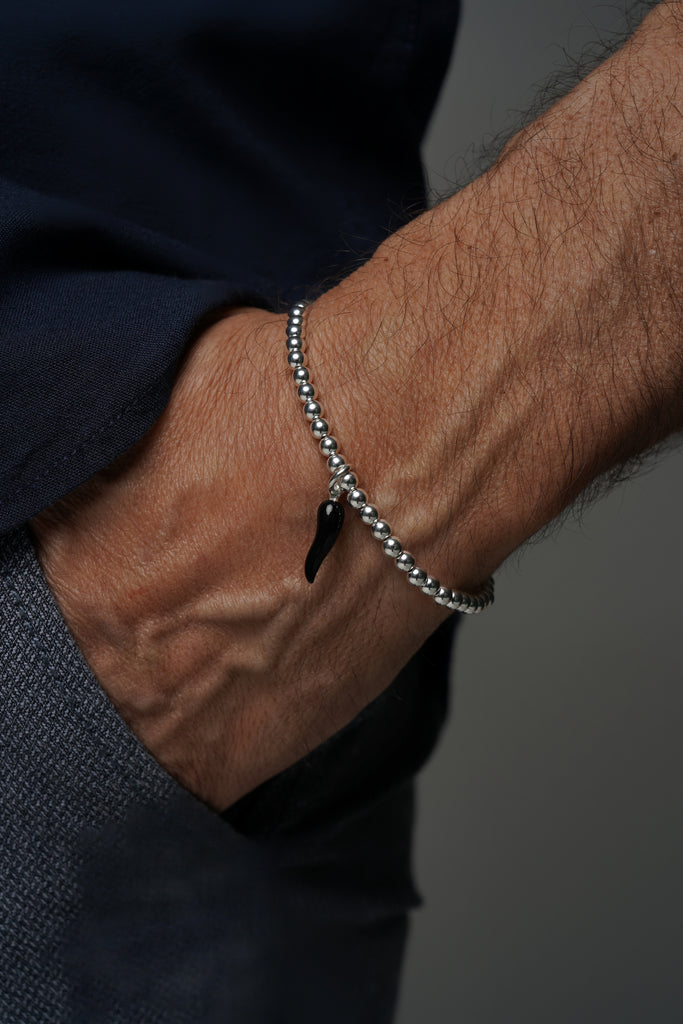 925 Sterling Silver Black Cornetto (Italian Horn) Stretch Bracelet, Malocchio Bracelet, Stacked Bracelets, Silver Bracelets