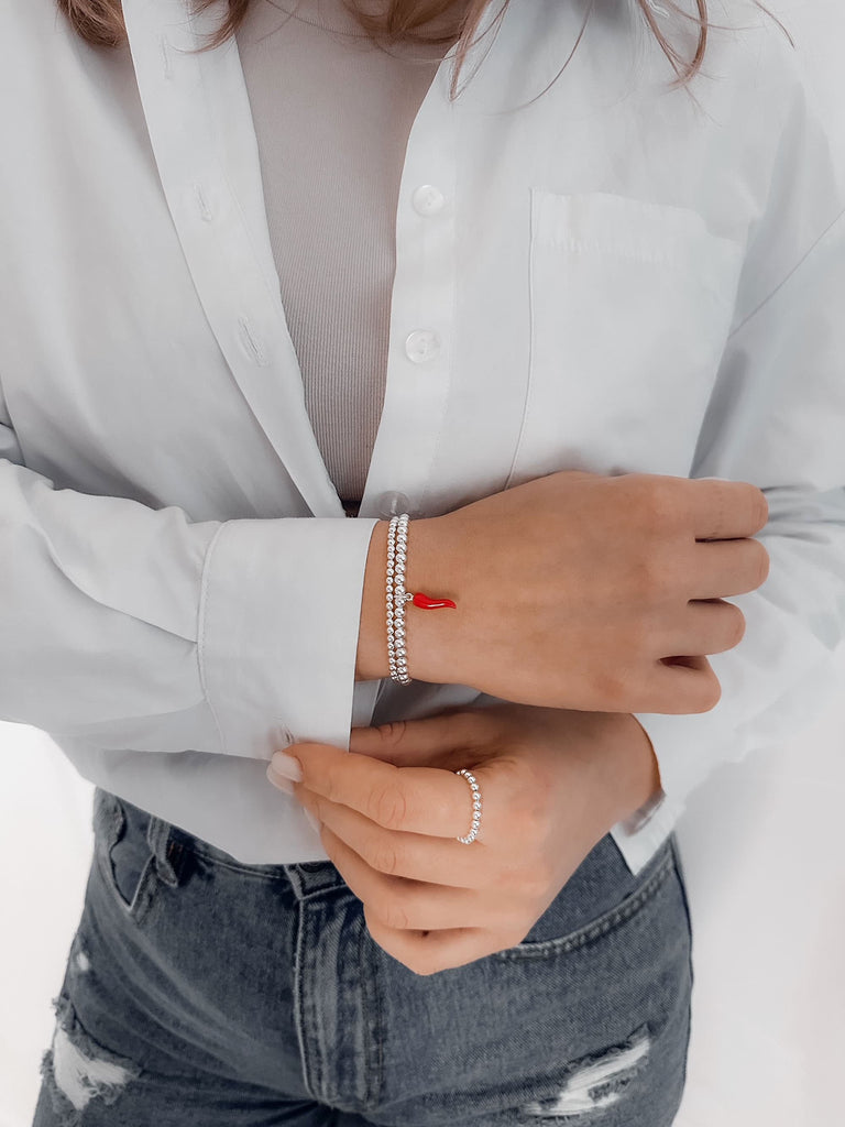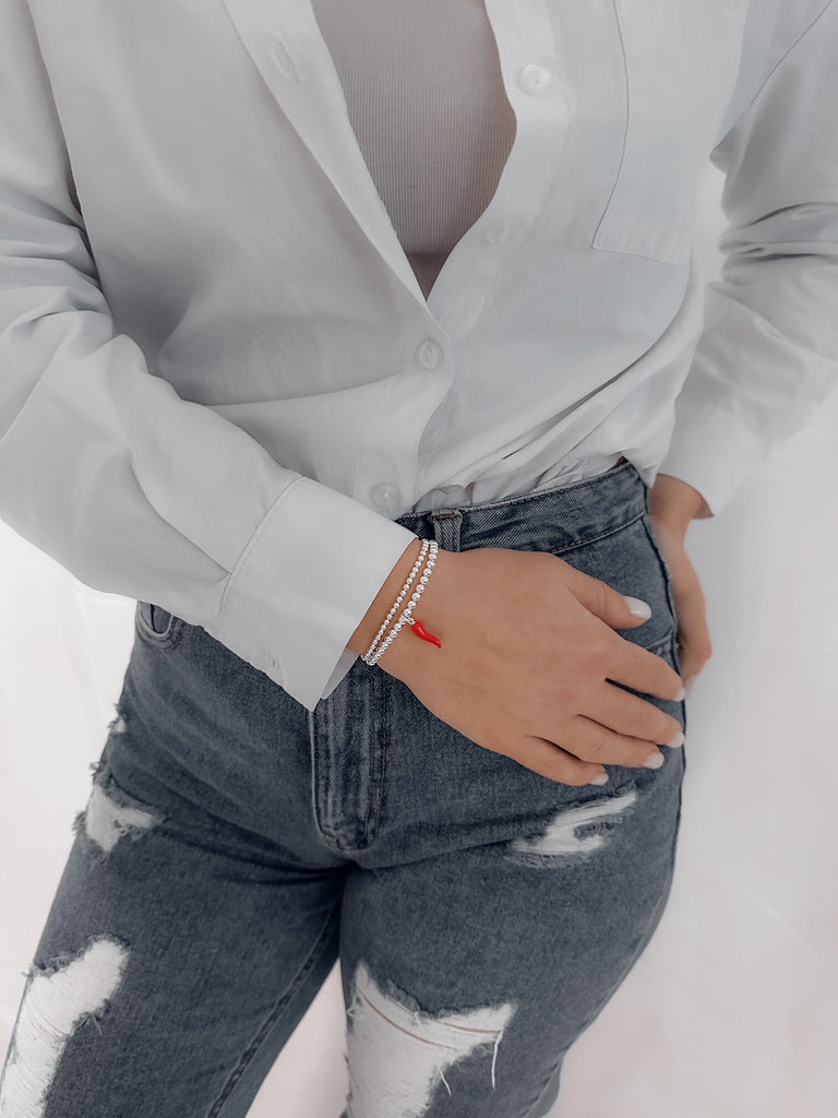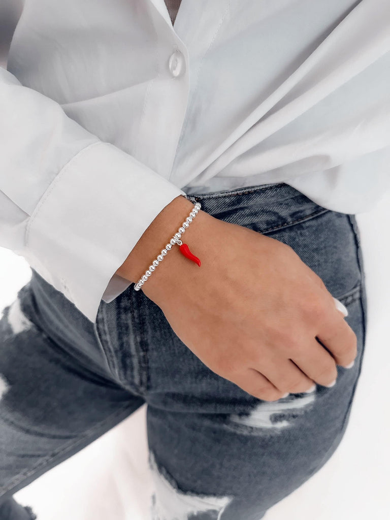 925 Sterling Silver Red Cornetto, Italian Horn Bracelet, Malocchio Bracelet, Stacked Bracelets
