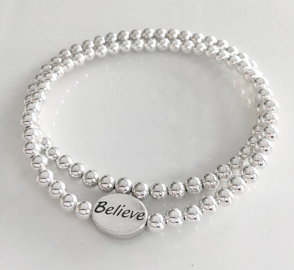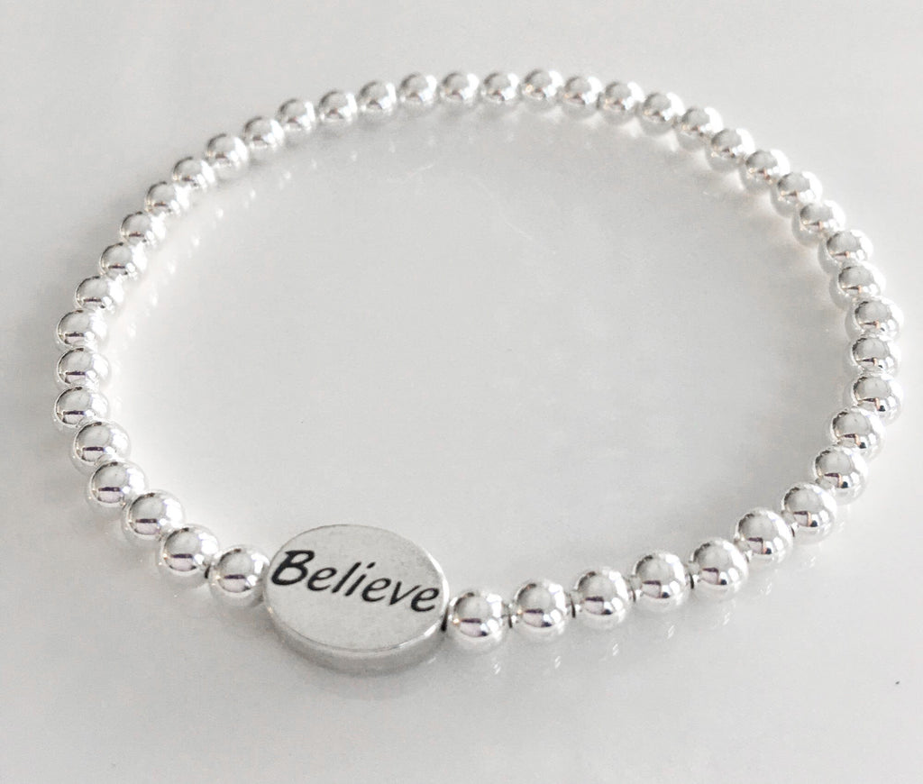 925 Sterling Silver Stretch Believe Charm Bracelet, Bracelet, Believe Bracelet, Inspirational Bracelet, Bracelets