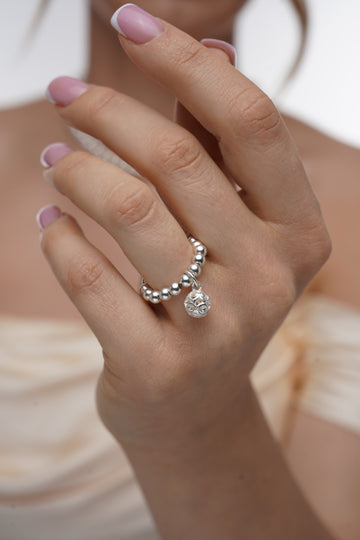 925 Sterling Silver Stretch Filigree Bead Charm Ring, Filigree Ring, Women's Rings, Charm Rings