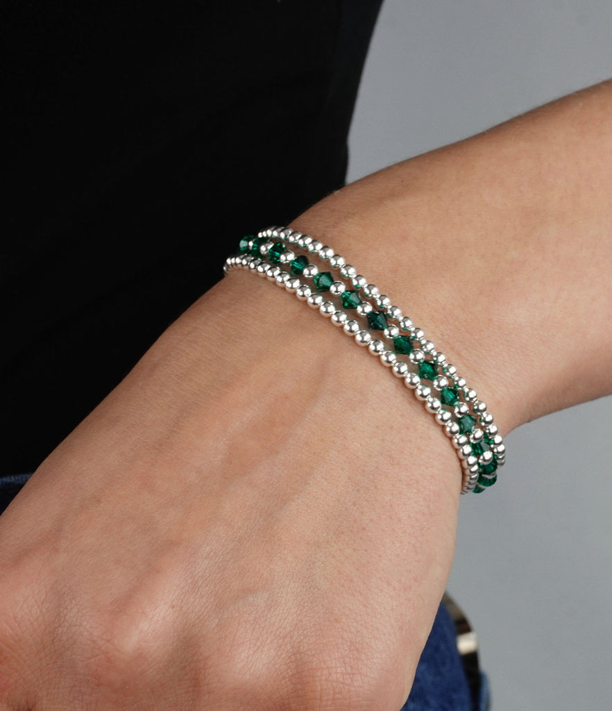 925 Sterling Silver & Swarovski Birthstone Mix Bracelet, Sterling Silver Stretch Bracelet, Birthstone Bracelet, Stacked Bracelets